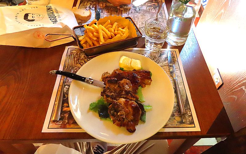 Lunch was at the nearby Pasqualino Al Colosseo dal 1956- Trattoria Romana, where I had Abbacchio alla Scottadito (grilled lamb chops) & Patate Fritte (French fries), while Linda had Piz Proscitto (Prosciutto pizza). The chops were very good.