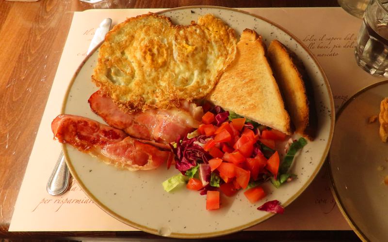 Ostia Antica Sunday was the first morning that we didn't have to leave the hotel early, so we took advantage of the breakfast provided by the hotel at Rotonda Restaurant about a block up the street. We could select from 4 meals and both went with eggs & bacon.