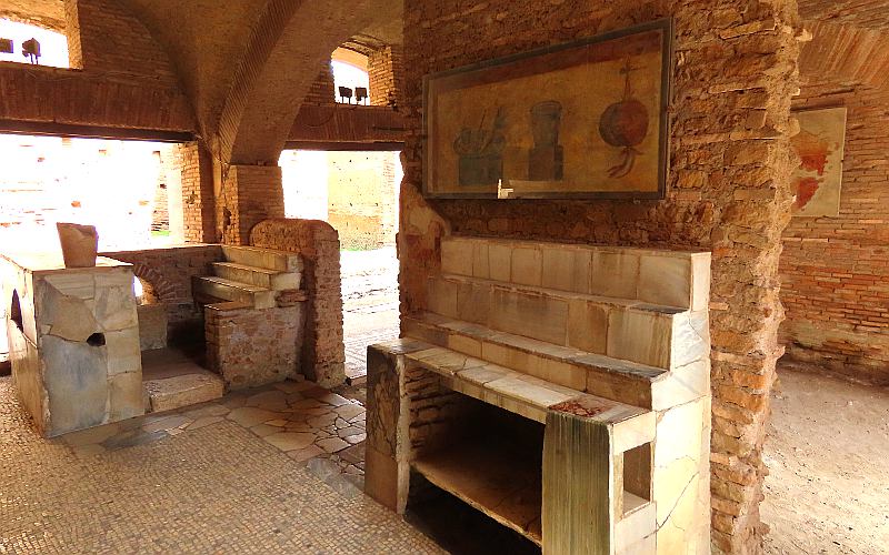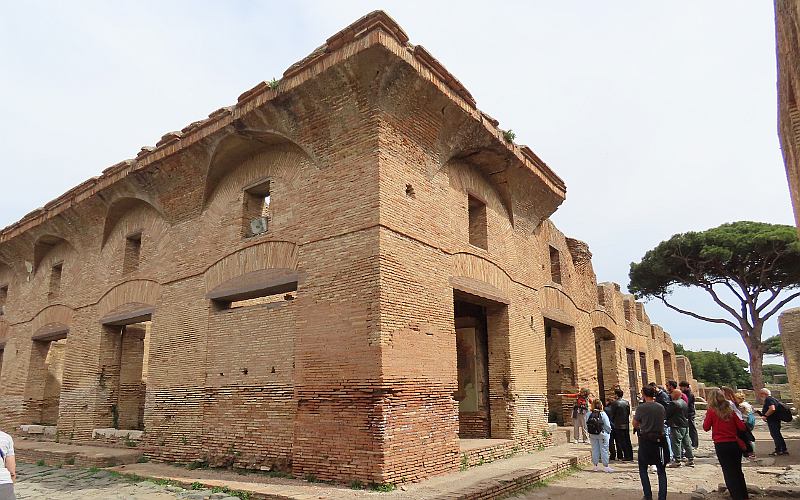 Today we had a private tour which I had booked through "Tours By Locals," and the taxi included for the for the half day picked us up at the hotel at 9 AM, stopping to pick up our guide on the way out of Rome to the nearby port city of Ostia Antica. Ferdinando is a licensed guide with a degree in Preservation of the Cultural Heritage in Sicily and a Master Degree in Classical Archaeology. He said he much prefers giving tours of Ostia Antica to the Colosseum or Roman Forum, and it is a location where he has participated in the archeology. The 2 1/2 hour tour was very detailed and I'm sure would have been longer if we had asked more questions. Ostia Antica is one of the best preserved Roman cities in the world, much less crowded than Pompeii (or any of the attractions in Rome), and many times closer to Rome than Pompeii. It was founded around 620 BC, conquered by Rome about 400 BC and a thriving city into the 5th Century AD. Portions of the community have been excavated to different depth layers and show the remains from different periods.