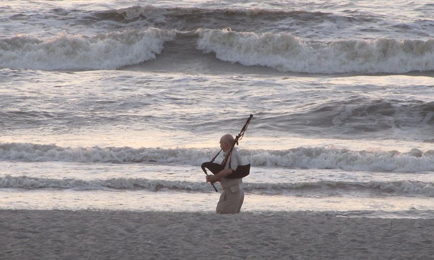 noticed a man playing a bagpipe along the shore. It wasn't until eating
