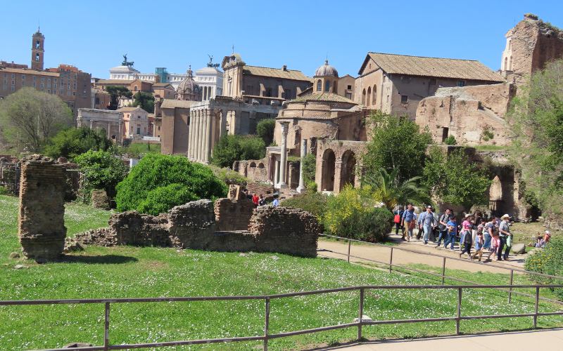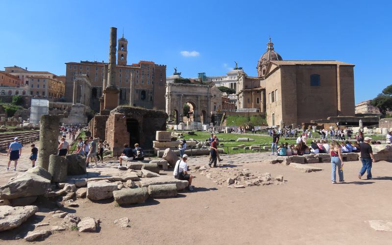 After photographing the Foro Romano (Roman Forum) from Palatine Hill, we made our way around to the Forum's east end and slowly worked through the area, exploring the remains of government offices, tribunals, temples, memorials, statues and churches which were the center of Rome's day to day life from the 8th Century BC to the 7th Century AD.