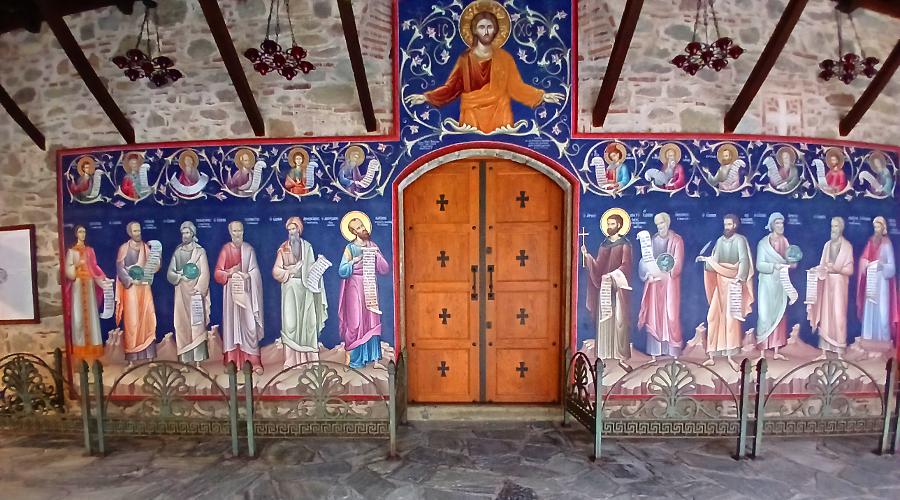 Holy Monastery of Rousanos - Saint Barbara began in the 16th Century and is also a convent. Dimitris dropped us off above Saint Barbara and we took a long, narrow, steep path down the mountain to it, only to find it was closed. From there we were able to continue down a much shorter distance to the parking area where he was waiting. He had confused which day of the week it was and it is closed on Wednesday.