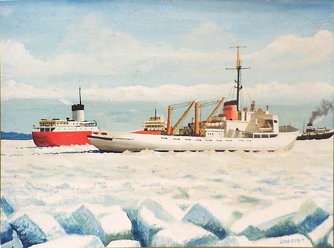 At full load the Mackinaw displaced 5,252.4 tons and drew 19' 2.25" of water. Her innovative features included a 12 foot diameter bow propeller which draws water from beneath the ice ahead, both weakening the ice and sending water along the sides of the hull and reducing ice friction. The Mackinaw also has a heeling system which can shift nearly 112,000 gallons of ballast water from side to side in 90 seconds, allowing a rocking motion which assists the Mackinaw in freeing itself from ice. The Mackinaw had a compliment of 8 officers and 67 elicited men and women. The last members of the ship's compliment will left the Mackinaw at on June 30, 2006, turning the Mackinaw over to Icebreaker Mackinaw Maritime Museum (IMMM). Why "WAGB?" The "W" has been applied to all Coast Guard ships since W.W.II. During the war, to avoid problems that could arise from a Navy and Coast Guard ship having the same number on their bows, a "W" was painted before the number to signify the ship as a Coast Guard ship. The "AGB" is for Arctic Glacier Breaker. The Polar Rollers (Polar Star, Polar Sea) and Healy are also WAGB's. The "AGB" is for Arctic Glacier Breaker. The Polar Rollers (Polar Star, Polar Sea) and Healy are also WAGB's.