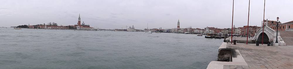 We continued to wander east, walking along the Giardini della Biennale, gardens which were originally created by Napoleon Bonaparte and which are used to host part of the Venice Biennale Art Festival. The gardens have many 19th & 20th Century monuments and 30 permanent national pavilions. We moved inland into residential streets which we had almost exclusively to ourselves and where we felt like we were finally lost. We had now left the area covered by our map, but continued on until we stumbled upon the Venezia football stadium at the far east end of Venice on Isola di S. Elena. We now headed a bit north, then west, trying to find our way back onto the map. We were totally lost before we found the Giardini della Biennale again. We were now getting footsore and were both ready to take public transportation, so we rode a vaporetto water bus back to San Zaccaria and our hotel. |