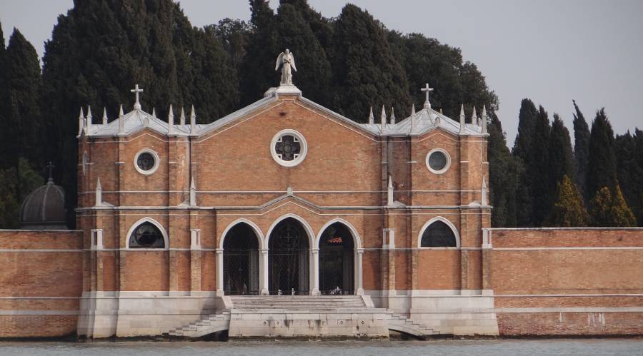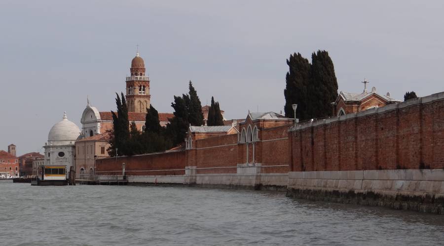 Wine boat with the Isola di San Michele (Island of the Dead) cemetery