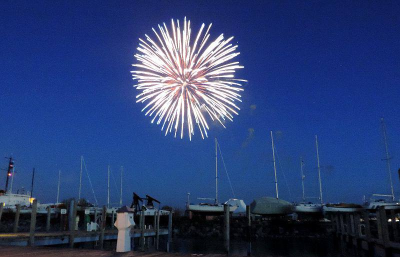 We followed up with some shopping in the downtown while waiting for dusk and a fireworks show. The one day past full moon came up during the fireworks and my time was split between photographing the moon and the fireworks.